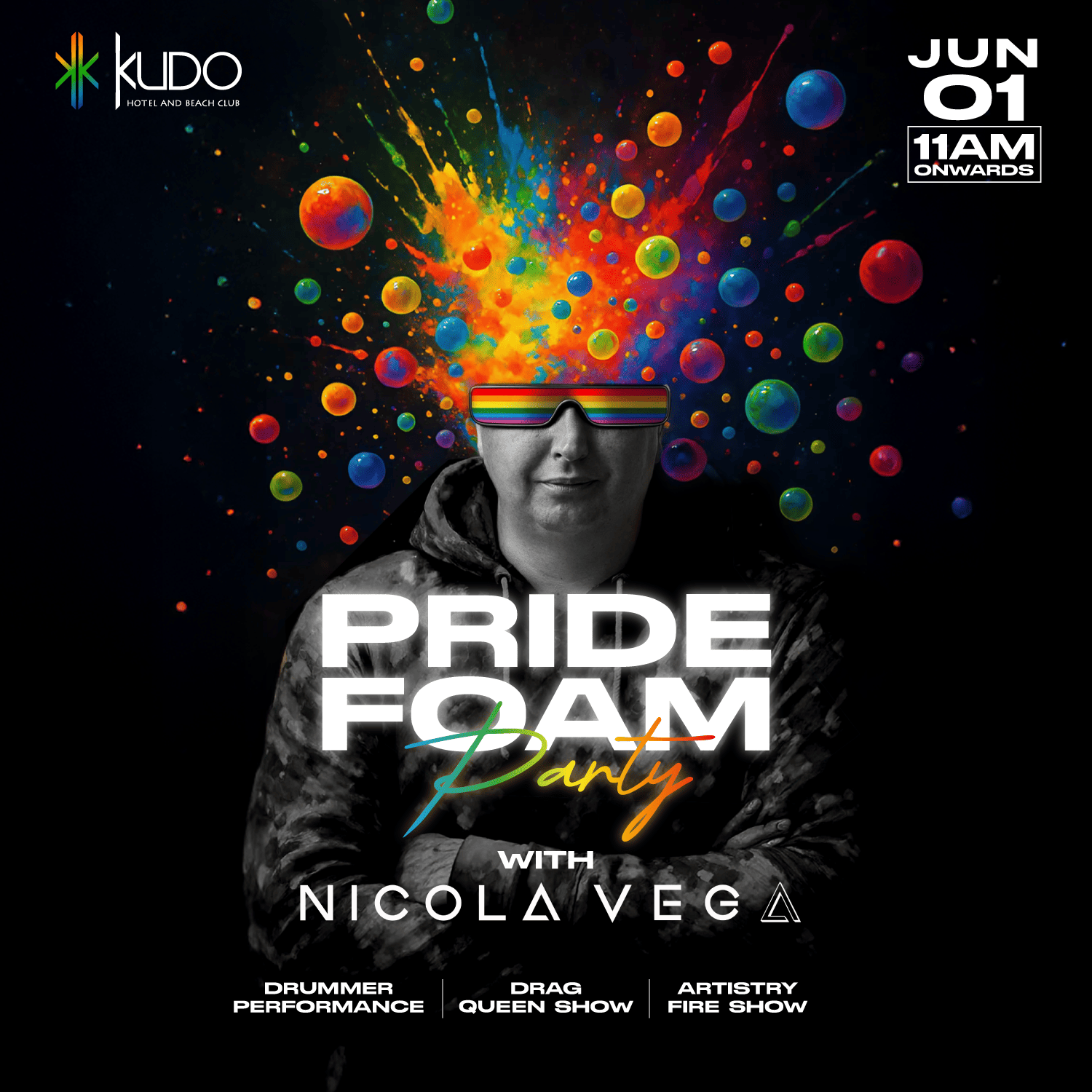 On June 1st, 2025, we’re cranking the energy sky-high at our Pride Foam Party —an all-day, all-out beach bash packed with:
